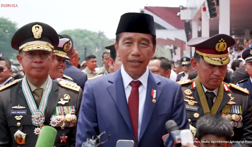 Presiden Jokowi memberikan keterangan pers usai upacara HUT ke-79 TNI di Monas. Foto : Tangkapan layar channel YouTube Sekretariat Presiden